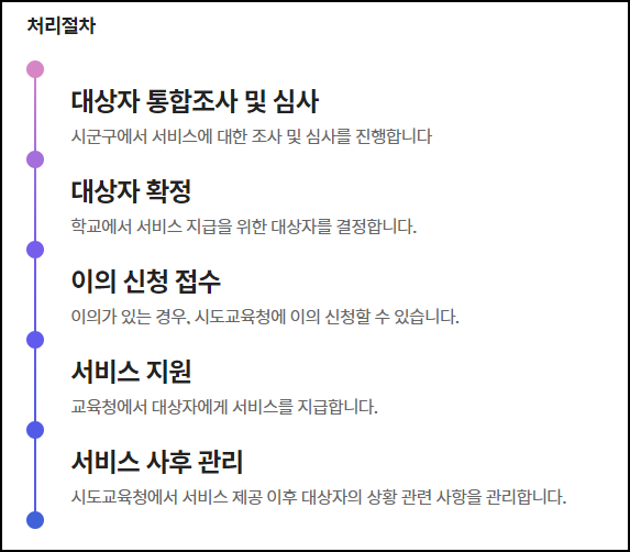 - 학교 별 교과서 배부시기에 학교에서 수급자에게 교과서를 지급