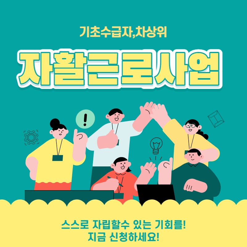 기초수급자 차상위계층의 스스로 자립할수 있는 기술 지원 및 근로 기회를 제공하는 자활근로 지금 신청하세요