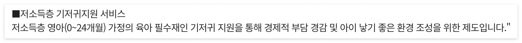 저소득층을 대상으로 아기 출산 후 0개월에서 24개월까지 기저귀 구매비용을 일정비용을 지원해주는 혜택입니다.