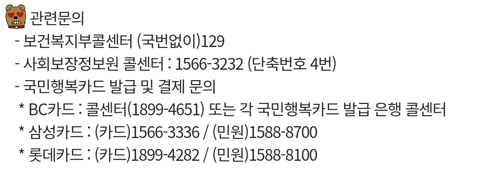 비용은 2023년 기준 8만원이며 현금지원이 아니라 국민행복카드로 지급되며 3개월마다 24만원씩 지원됩니다.
